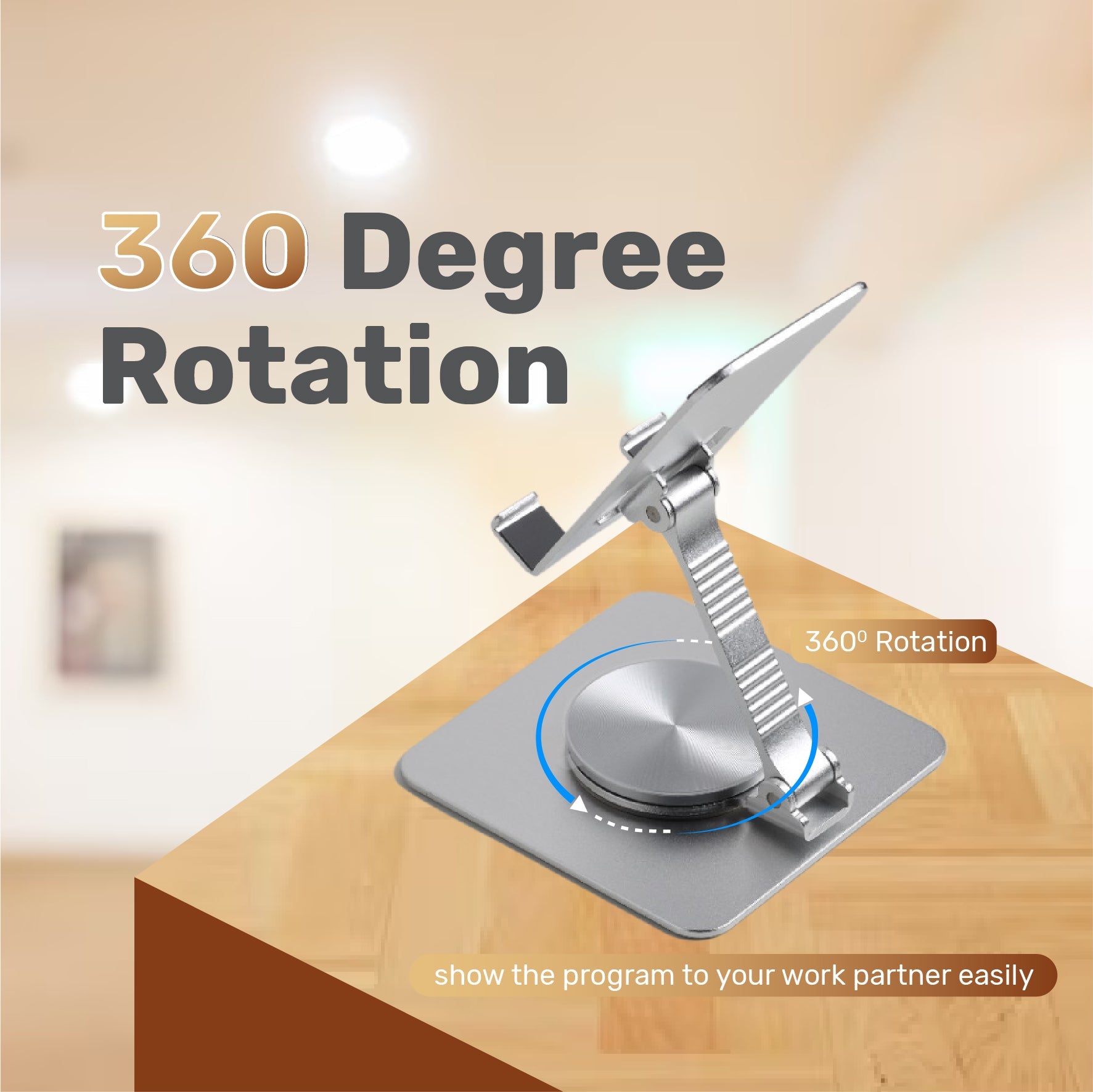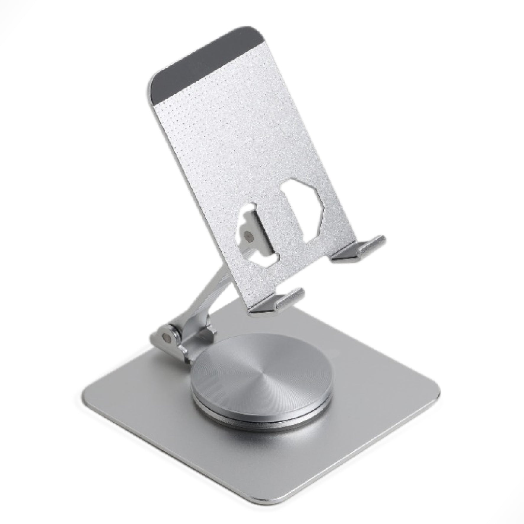 ARIZONE 360 Stand - Adjustable Cell Phone Stand for Desk | 360 Click-Rotating, Multi-Angle, Non-Slip Metal Base, Foldable & Portable | iPhone Stand for Desk, Cell Phone Stand Holder (Silver)