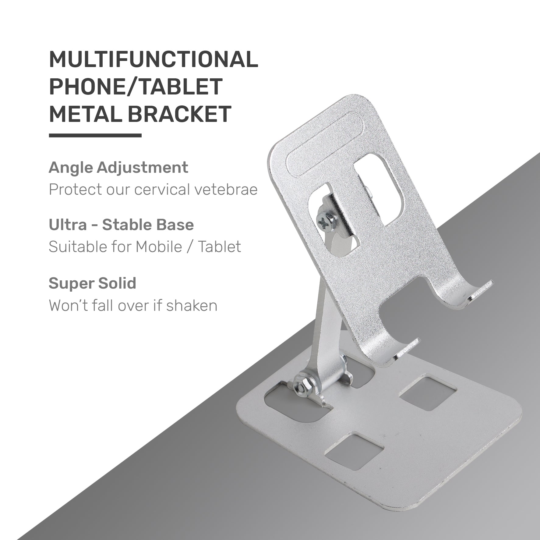 ARIZONE Phone Stand, Height Adjustable Phone Holder, Aluminum Foldable iPhone Stand for Desk, Stable Mobile Stand Holder Compatible with Most Phones (Silver)
