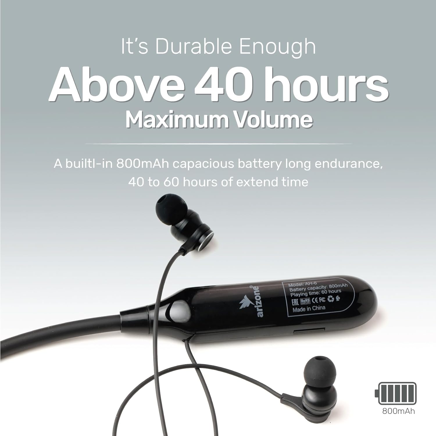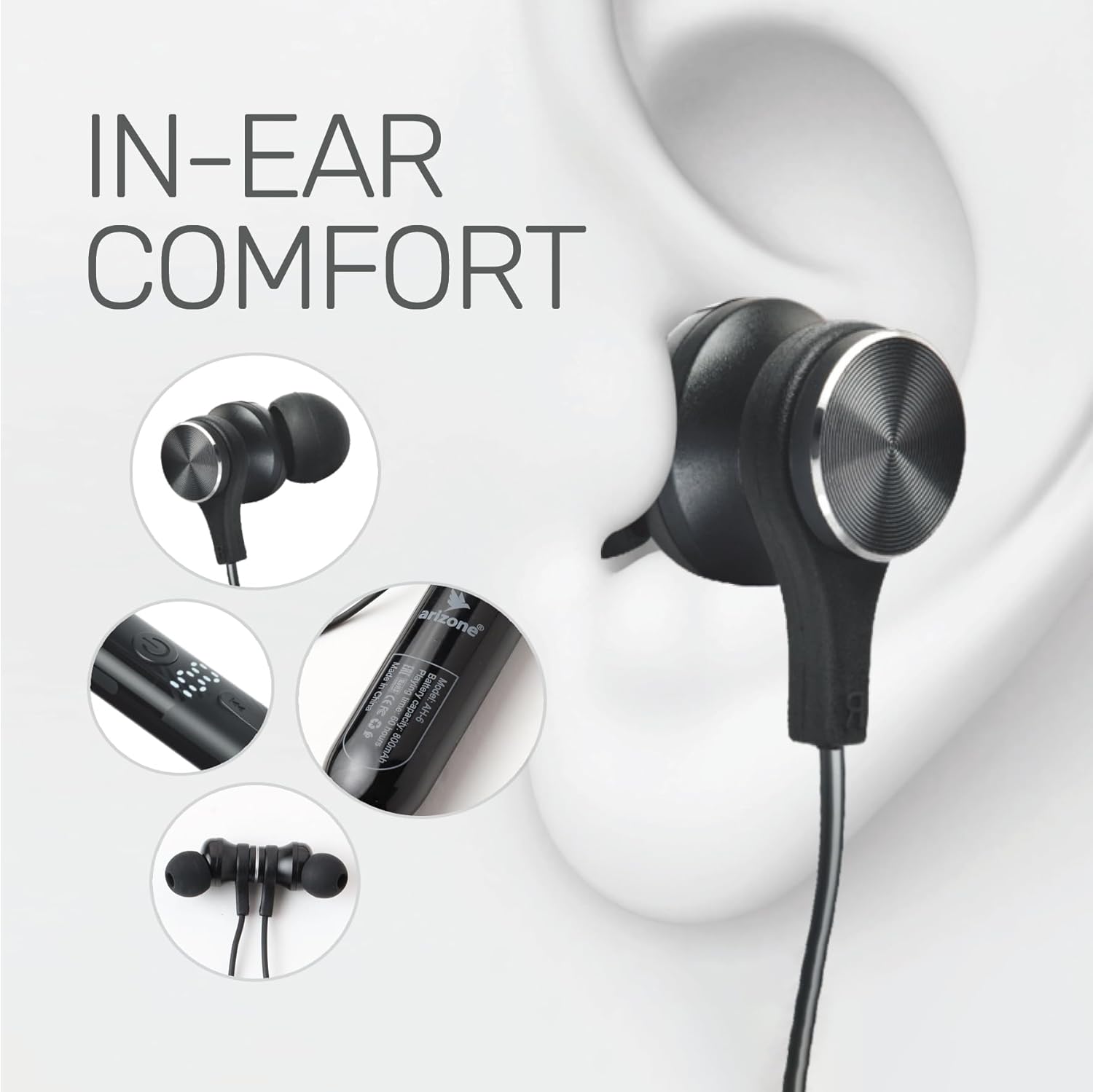 ARIZONE Wireless AH-6 Bluetooth 5.0 In-Ear Earphones with Noise Cancelling, Featuring 60 Hours of Battery Life